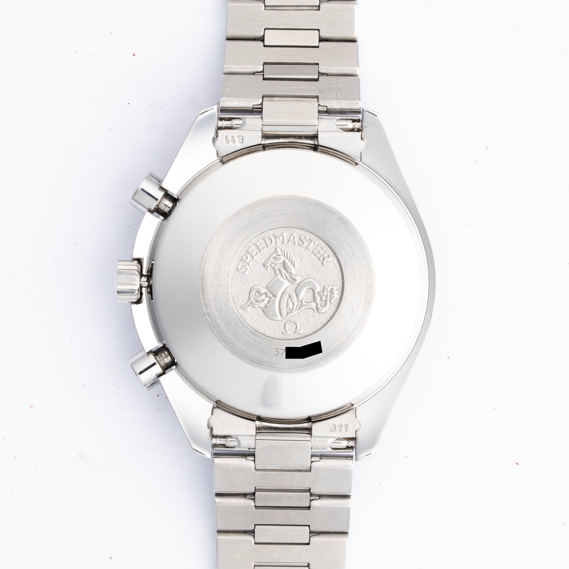 This Speedmaster Reduced is a Luminova example that is in mint to like new pre-owned condition. The dial and hands are in excellent condition with no major flaws to note. The caseback is marked with a hippocampus logo with a serial number, 57m. According to the prior owner, the watch received a service sometime in 2024, though no service documents will be included. We have tested the watch to ensure it is running within COSC Specifications.