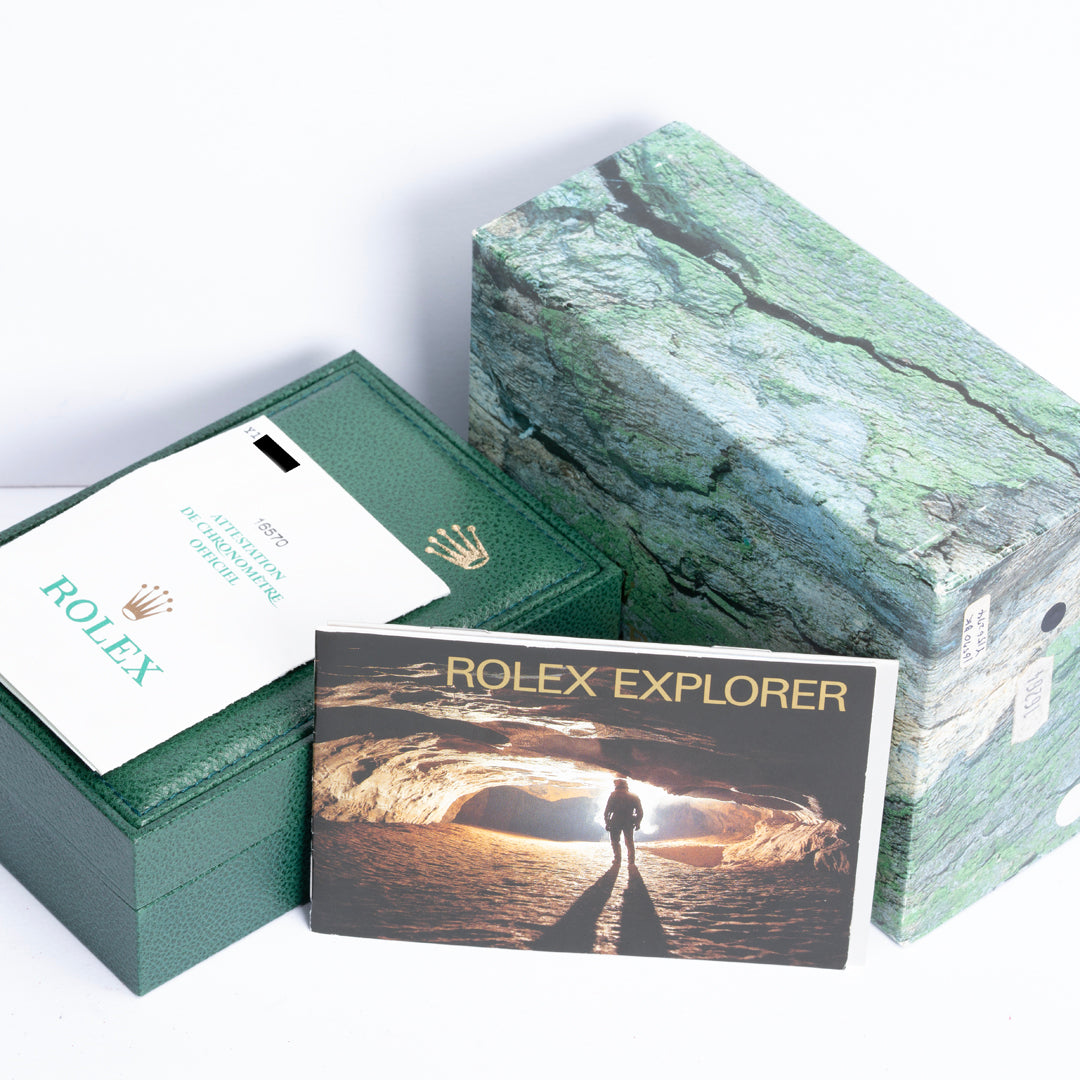 This particular ref. 16570 is in excellent pre-owned condition, meaning there are very little to no signs of wear throughout. The super luminova dial and hands remain in excellent condition. The watch includes the original inner/outer box, and the original papers dated 2002.